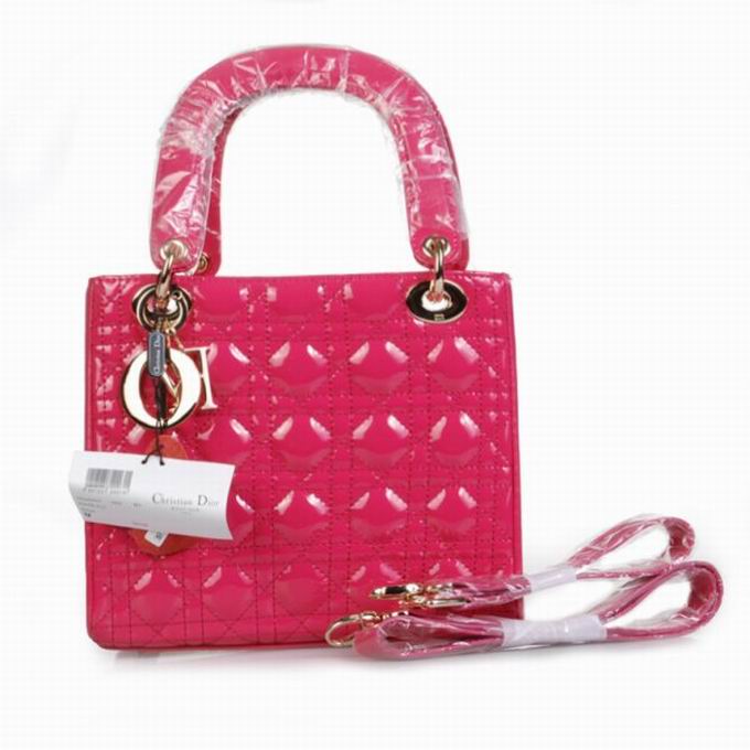 Lady Dior(黛妃包),Dior基本款手袋之一。在時尚圈擁有眾多的粉絲,其中更是不乏明星名媛的身影。這款誕生於90年代初的手袋,與戴安娜王妃有著一段特殊的傳奇。90年代,Dior公司贊助的塞尚畫展在巴黎大皇宮展出,開幕式上希拉克夫人向戴安娜王妃贈送了Dior新款包。Dior旋即將這個還沒有命名的新包,冠以Lady Dior的優雅名字。Lady Dior,非凡的品位,明顯的時尚標誌和最好的製作材料以及手工技術。懸掛在包把上的D.I.O.R四個字母的金屬吊扣是Lady Dior的招牌,但它豐富的內涵和多樣的變化則來自包面上獨特的衍縫菱形棱格紋,優質的小羊羔皮,和95道精細的工序。作為一直熱賣不衰的經典款式,Lady Dior每年都會在材質、包形上出新,但始終不脫離雅致的路線。