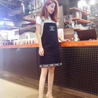 > 衣服服飾 > 高級時裝(明星,走秀,雜志) > CHANEL香奈兒新款18春夏 藏藍吸水刺繡雙C字母背帶裙 廣泛的一件單品了 自帶時尚屬性的 牛仔面料搭配青春減齡字母背帶 胸口一個大大的刺繡雙C字母口袋 炒雞可愛 下擺也採用了字母織條拼接 夏天上面配件T或襯衫穿 就