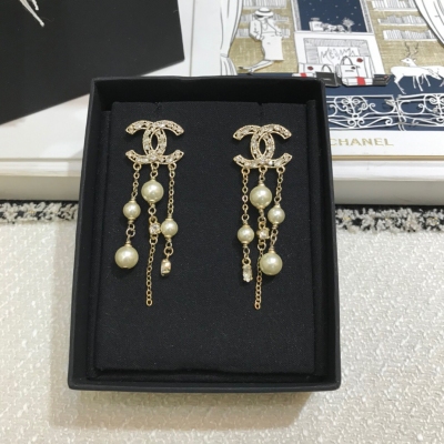 > 飾品珠寶 > 名牌飾品 > Chanel香奈兒飾品 > CHANEL香奈兒 CC流蘇質感珍珠耳環 運用品質上乘的黃銅材質&有調性的光澤感的施 華 洛水晶,設計以左右倆邊珍珠與水晶精密鑲嵌、簡潔又不失細節的細緻,真心百搭好看!疊戴首選!