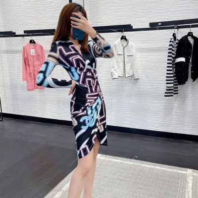 > 衣服服飾 > 高級時裝(明星,走秀,雜志) > CHANEL香奈兒 2021 春夏最新款連衣裙,採用冰絲面料重磅印花,這款連衣裙是香家這個季度最出色的印花之一,很女人的一款瘦腰裙,腰部位褶皺設計十分遮肉肉,所以肚子上有肉肉的mm們,大可放心。上身效果超級魅兒 超級顯瘦
