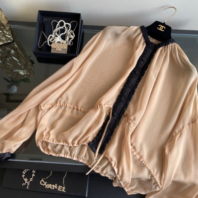 > 衣服服飾 > 高級時裝(明星,走秀,雜志) > CHANEL香奈兒 2021ss 華麗復古的防曬上衣 宮廷風的燈籠袖抽腰元素很皇室的貴族氣息 珠光香檳色太高級了 可性感禦姐可溫柔小女人 相容任何基礎搭配 撞色織帶拼接更加精美有層次 秋冬打底也是非常加分的單品 現貨發售
