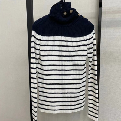 Chanel香奈兒 2021fw 秋冬高領針織衫氣質內搭 經典條紋元素+金色復古紐扣復古高級!修身的版型顯瘦氣質 疊穿非常有層次感 經久耐穿不過時 強烈推薦SML FT051713