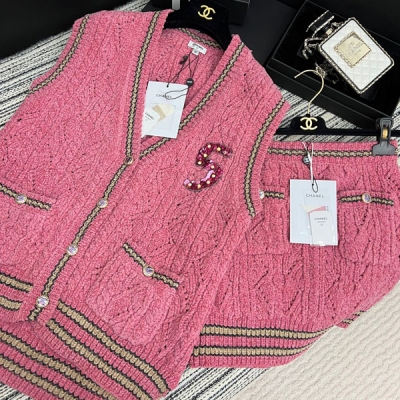 CHANEL香奈兒 2022/FW 高級手工坊系列針織套裝經典巴羅克風 復古華麗 進口機+手工鉤邊 無敵重工的設計 釘珠裝飾質感超棒 增添時尚品味的單品 SML