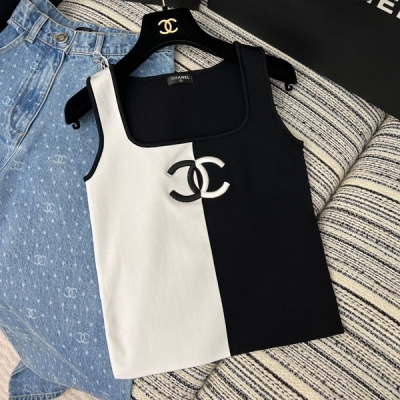 > 衣服服飾 > 高級時裝(明星,走秀,雜志) > Chanel香奈兒 2023ss/春夏度假最新款針織背心經典黑白配色簡約百搭 vintage中古款刺繡背心 復古有層次 永恆不過時的高級感 貫穿所有小香風的百搭精品!SML