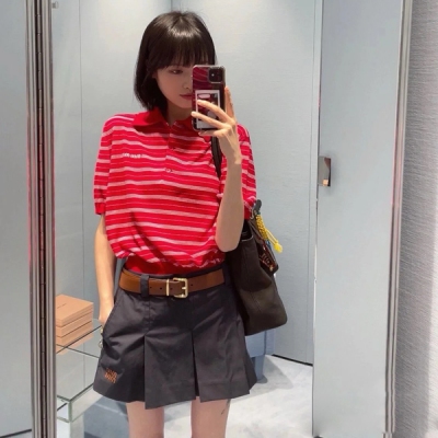 > 衣服服飾 > 高級時裝(明星,走秀,雜志) > Miu Miu 2024春夏新款百褶寬鬆短款迷你半身裙 出貨原版定制進口面料 超高級的色調 版型特別顯高 剪裁俐落簡潔 造型感十足 定制高端精選棉材質 裙擺字母標識 細節控的不要錯過這款 現貨SML