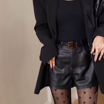 > 衣服服飾 > 高級時裝(明星,走秀,雜志) > Chanel香奈兒 2024c 小羊皮短褲皮料手感~經典的A字版型 揚長避短 ~百搭好駕馭 ~中腰的設計拉長腿部的比例 瞬間大長腿~個性又很時髦前衛 秋冬必備單品~MLXL
