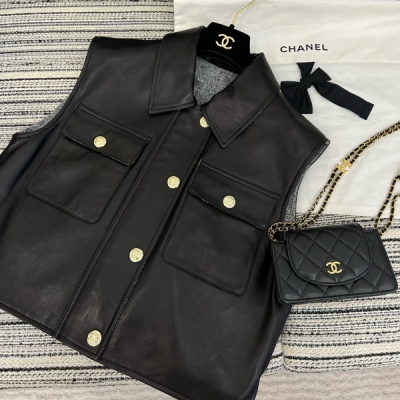 > 衣服服飾 > 高級時裝(明星,走秀,雜志) > Chanel香奈兒 2024fw 翻領小羊皮馬甲特定小羊皮 立體版型剪裁 單穿疊穿襯衣內搭也非常帥氣酷颯 皮質馬甲自帶質感 有渾然天成冷酷時髦感 隨便搭配都能解鎖高街的酷感 MLXL