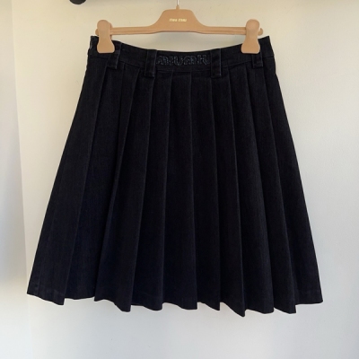 Miu Miu 2025早春新款重工水洗貼布刺繡字母燈芯絨牛仔百褶半裙出貨百搭款十足可以搭配任意單品減齡少女十足 復古水洗深藍 重工水洗工藝 定制開模金屬輔料 很好搭配 高品質牛仔面料 上身真的很舒適,現貨發售 36/38/40 Miu Miu FT067777